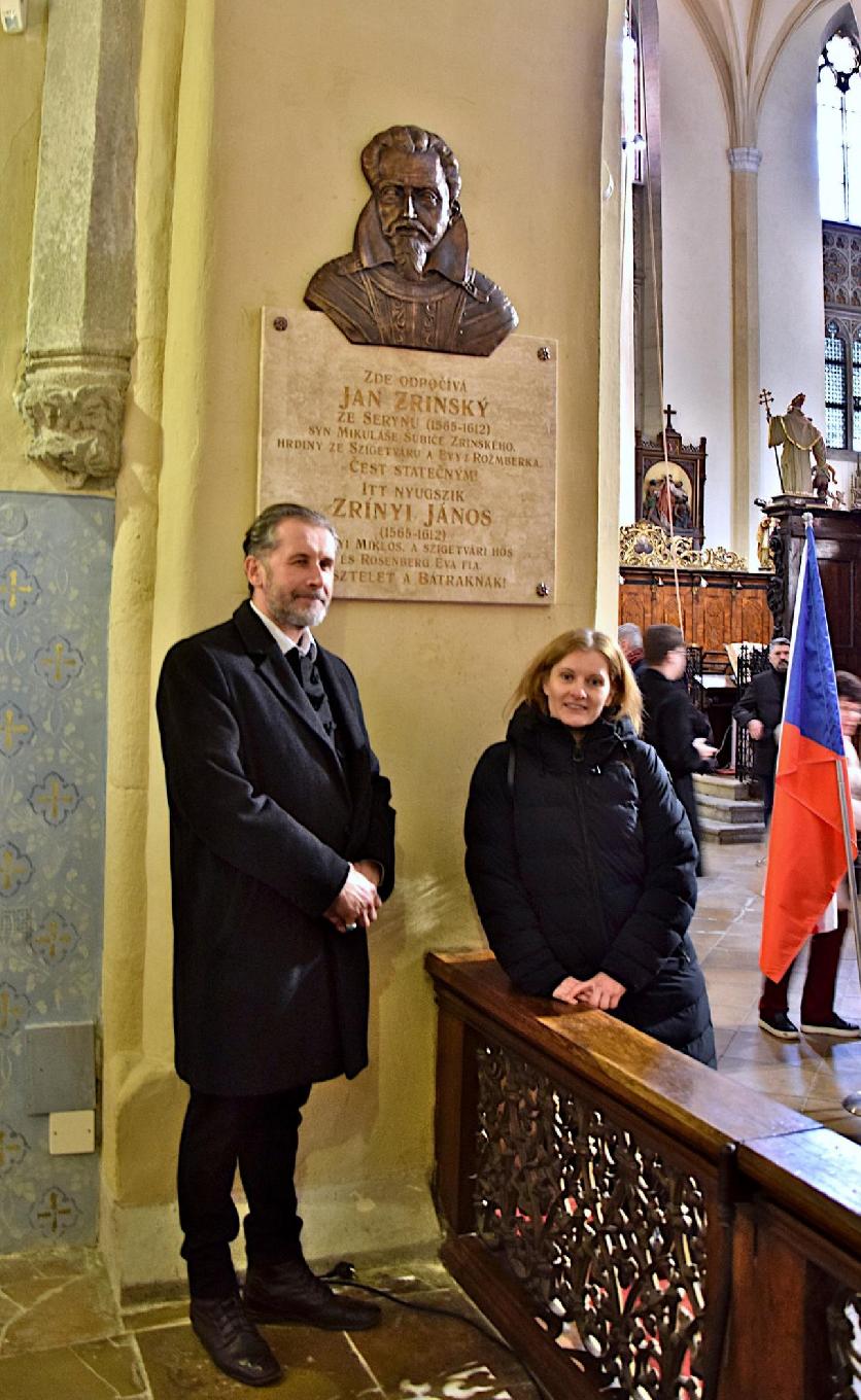 The Hungarian Embassy in Prague, in response to a call for proposals from the Ministry of Foreign Affairs, commissioned a memorial plaque for János Zrínyi, who is buried in the Cistercian monastery of Vyšší Brod. The plaque was created by sculptor Attila Pokorni. János Zrínyi, the son of Miklós Zrínyi and Eva Rosenberg, a member of a Czech noble family, represented a bridge between the Hungarian and Czech nations through his dual heritage. The memorial plaque thus pays tribute to a historical figure connected to both cultures. The ceremony held on February 24, 2026 – with the participation of the Liszt Institute Prague – was attended by representatives of the Hungarian community in the Czech Republic, political leaders from South Bohemia, and the sculptor. The program began with the unveiling and wreath-laying ceremony, followed by a communal lunch. Afterwards, a scholarly lecture was presented about the Závis Cross, which, according to the latest research, has been proven to originate from Hungary, giving it significant professional value for archaeologists and historians as well.